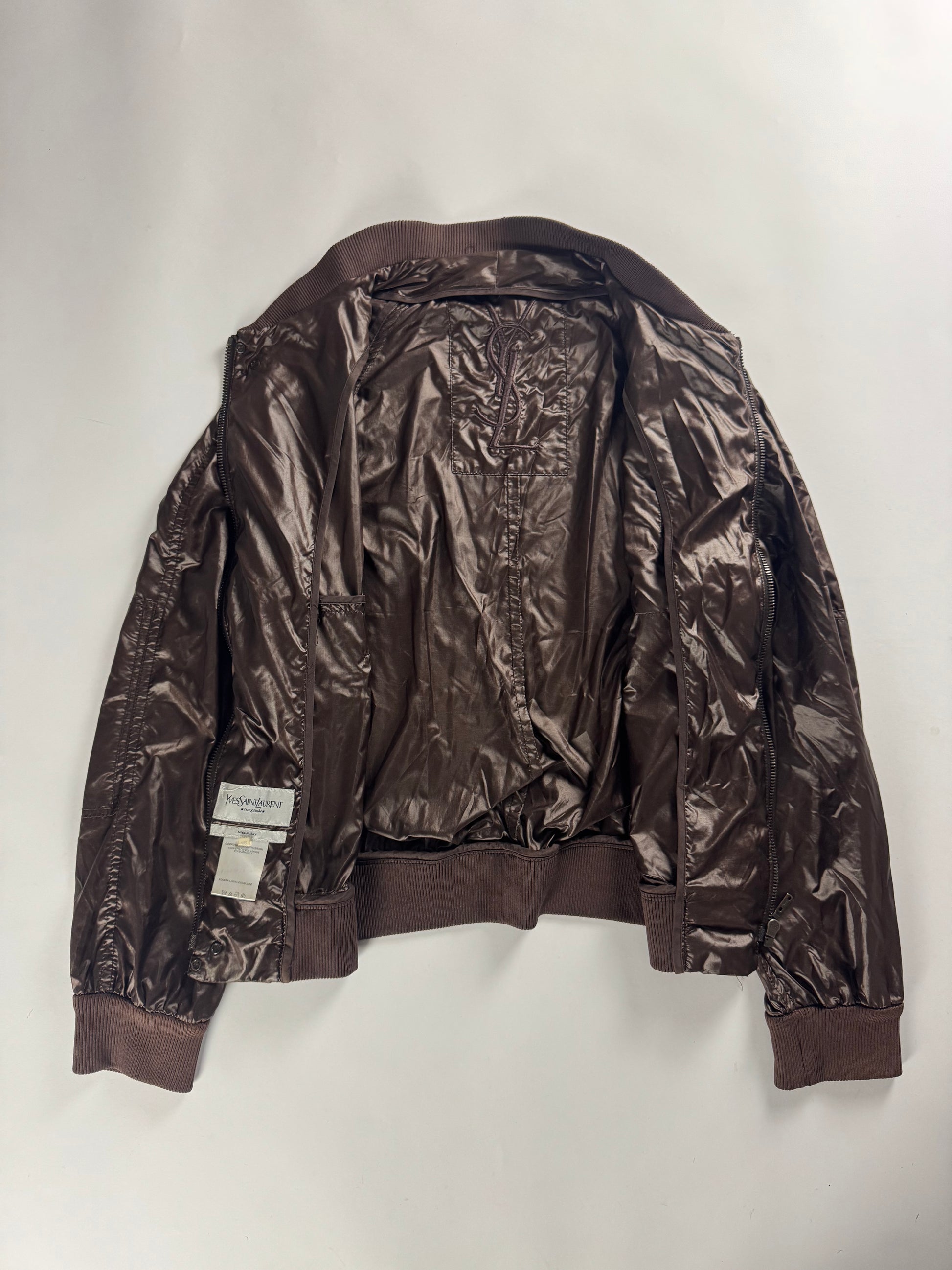 Yves Saint Laurent Rive Gauche Brown Nylon Bomber Jacket FW 2003 - M