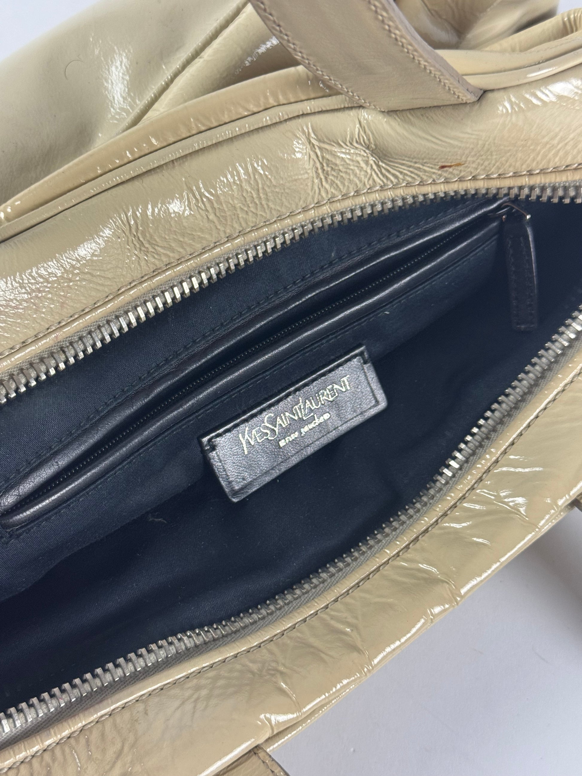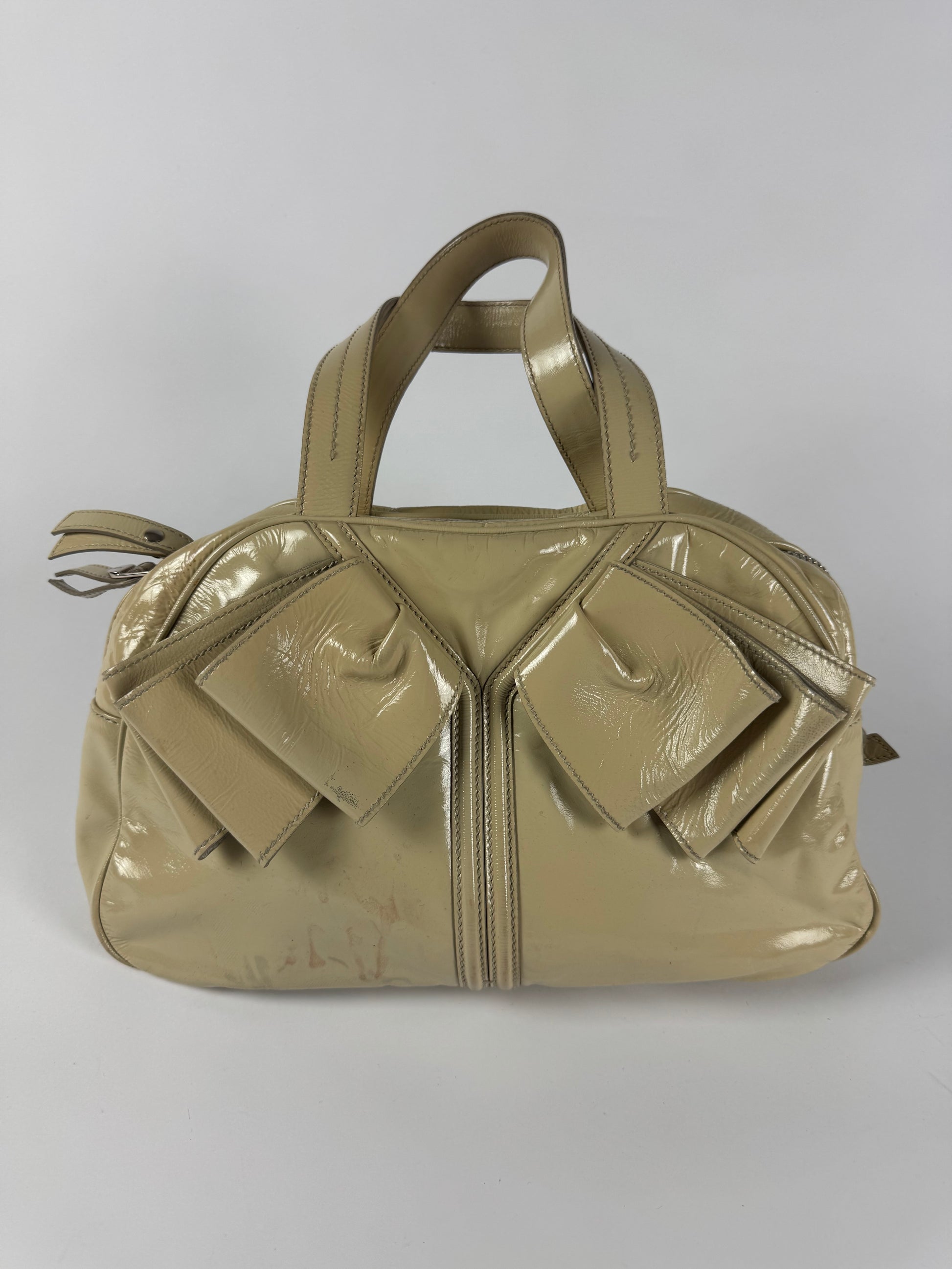 Yves Saint Laurent Rive Gauche Patent Cream Leather Handle Obi Bow Bag 2010s - OS