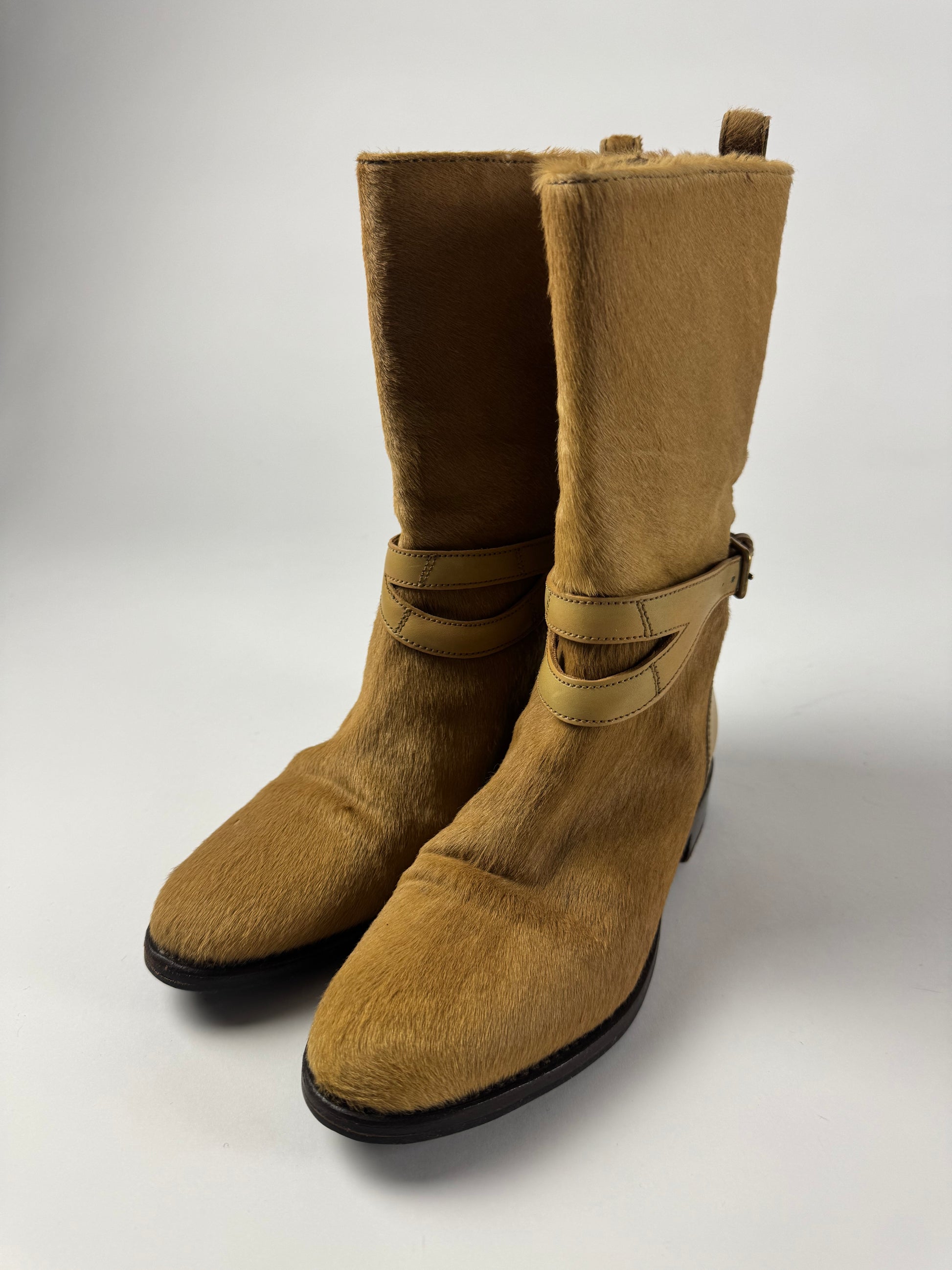 Yves Saint Laurent Rive Gauche Pony Hair Belted High Boots 2000s - 35 EU