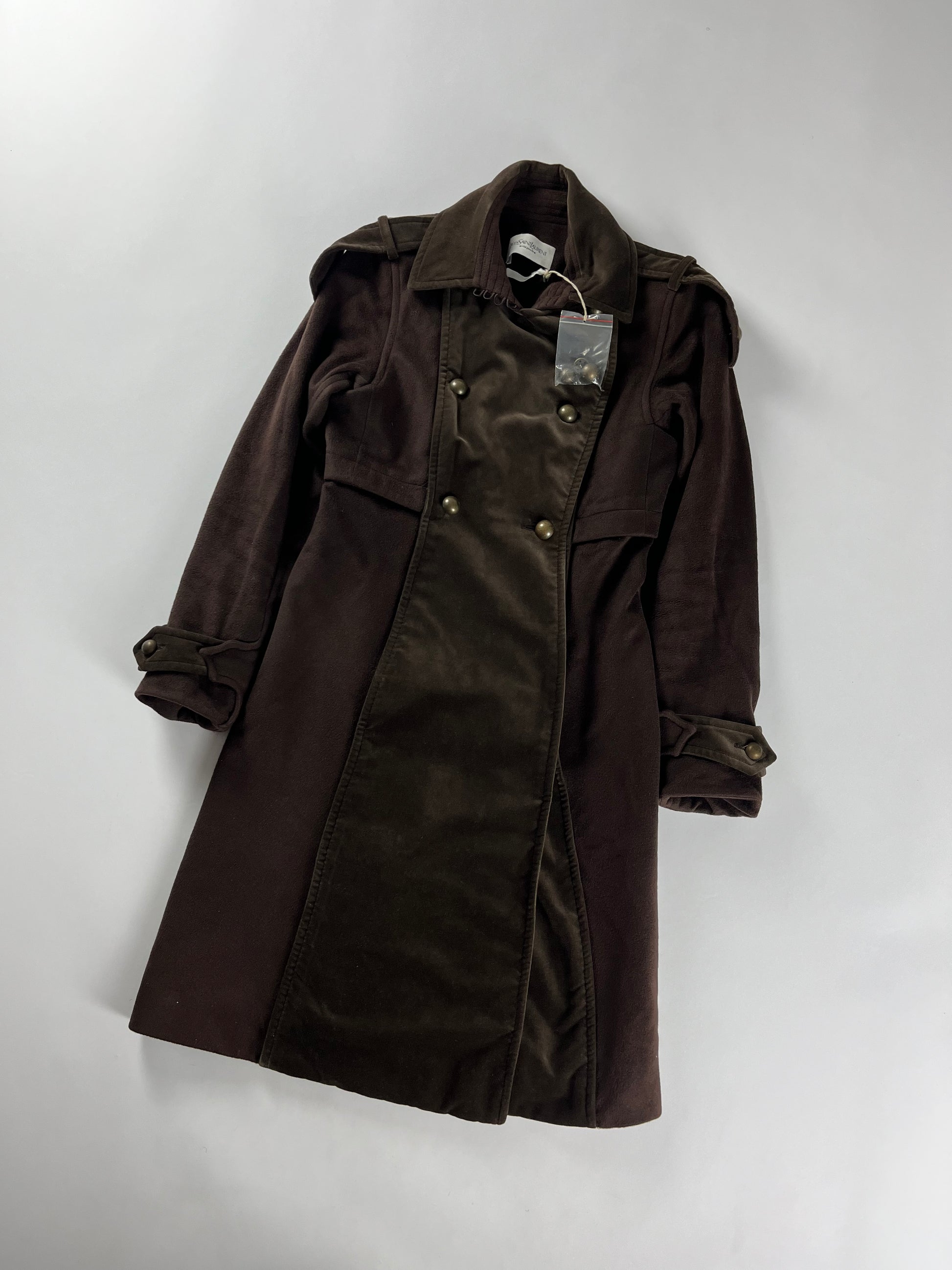 Yves Saint Laurent Sample Double Breasted Velvet Trimmed Military Coat FW 2005 - S